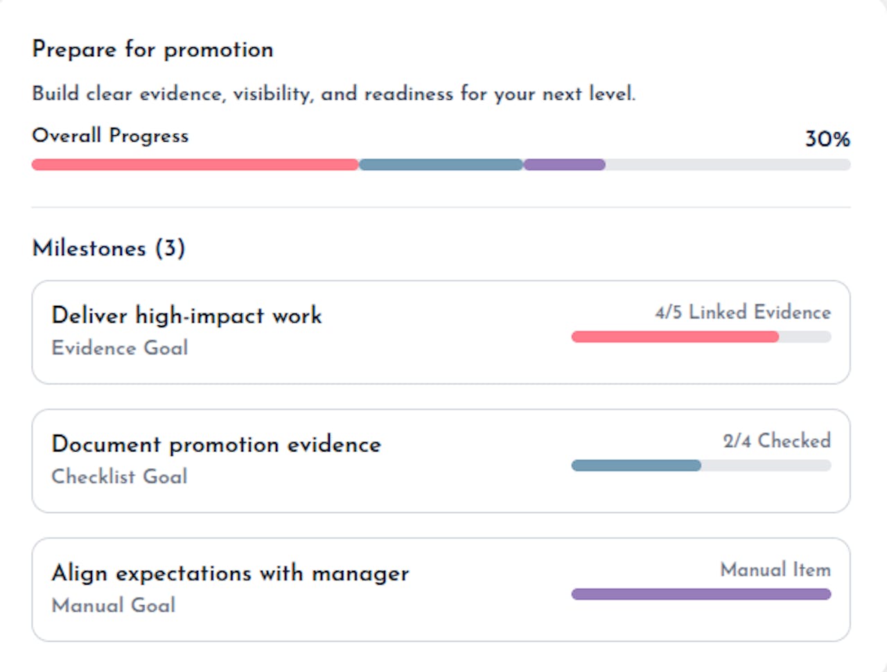 Turn achievements and goals into resumes, 1:1 talking points, and confident interview stories.